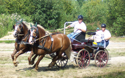 Wir stellen unsere Schwarzwälder-Füchse ein- und zweispännig auch erfolgreich auf Fahrturnieren in Dressur, Gelände- und Kegelfahren bis Klasse "M" vor.